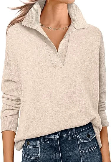 Womens Polo V Neck Long Sleeve Sweaters Lightweight Dressy Casual Business Basic Knit Pullover Top