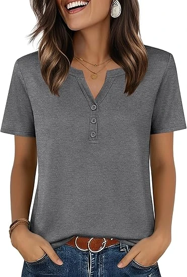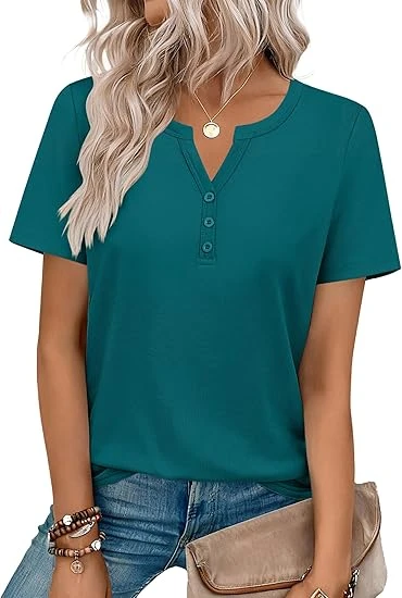 Womens Summer Tops V Neck Short Sleeve Shirts Dressy Casual Blouse Spring Vacation Tshirts Clothes